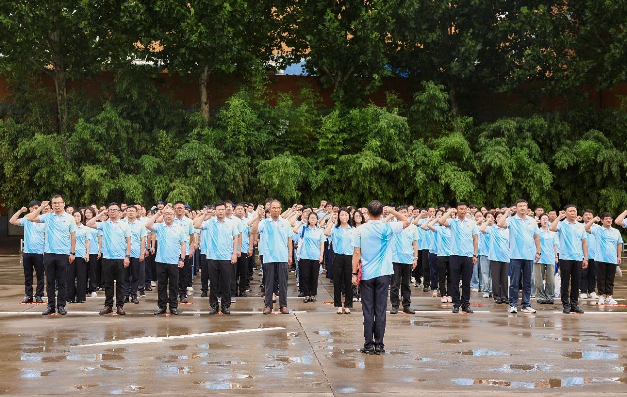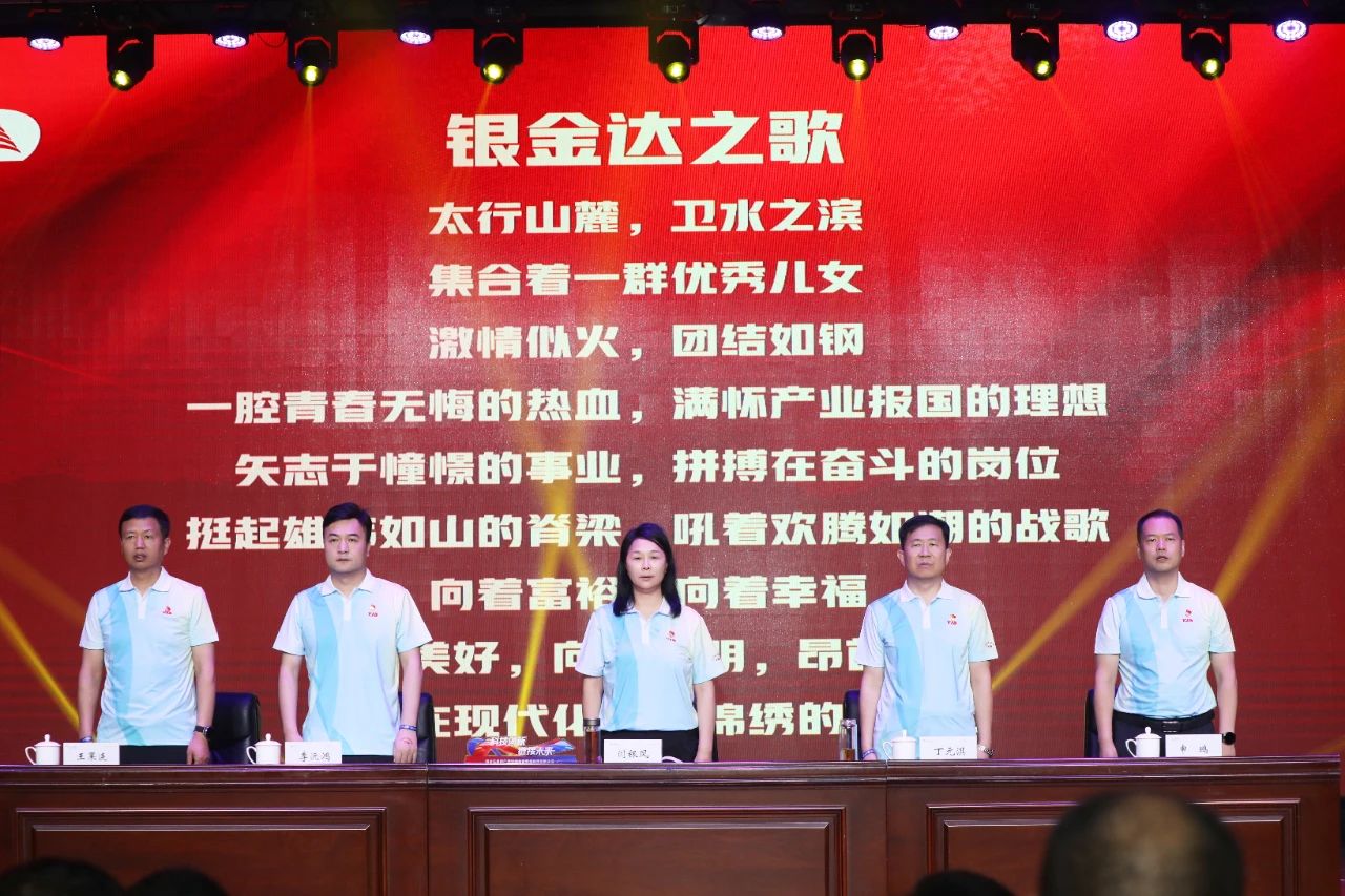 上午9:00,在唐莊干部教育學院主會場,大會在莊嚴的國歌聲中正式拉開帷幕。全體與會人員肅立合唱,愛國情懷與企業擔當在旋律中交融。隨后,《銀金達之歌》的激昂旋律響起,唱出了銀金達人三十一年如一日的堅守與豪情。